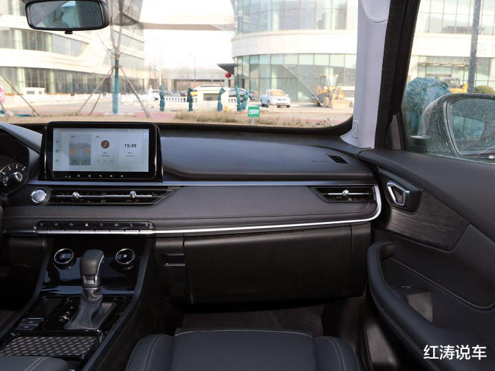 内饰以黑色为主,配以适量的镀铬装饰,经常碰触的地方是软性材质覆盖和皮质包裹,仪表盘由3.5英寸液晶屏和传统指针仪表组成,配备10.33英寸中控屏,空调控制区域是触屏和实体旋钮的设计,拥有倒车雷达、倒车影像、自动驻车、陡坡缓降、无钥匙进入和启动、主副驾驶座安全气囊等,功能不算丰富,但都是些实用的东西。